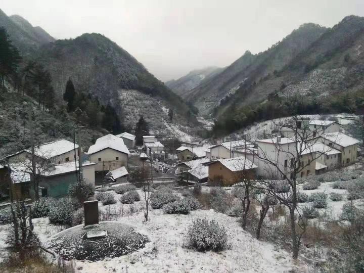 这是淳安胡家坪闻家板桥自然村。银装素裹,煞是好看。