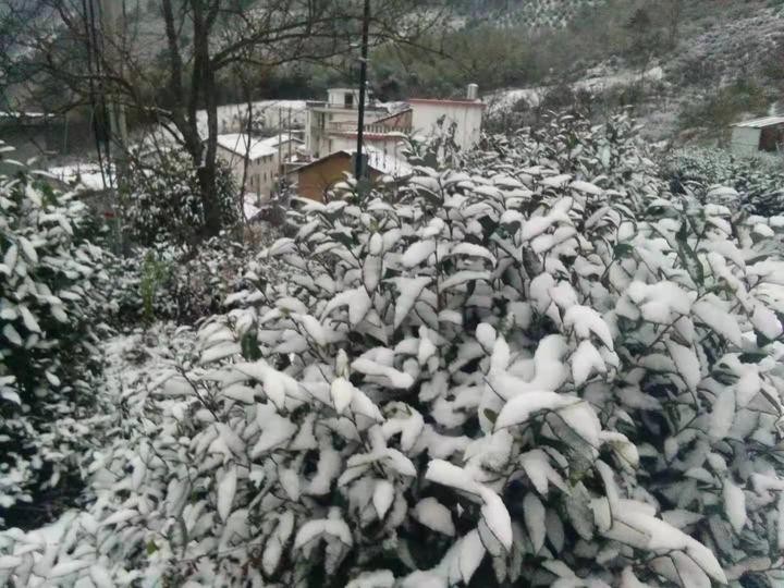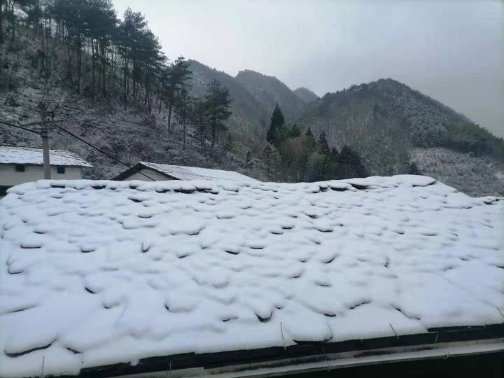 淳安屏门乡的小伙伴们一推门,也看到了白雪皑皑的景象,一大早在金陵村双坪自然村,屋顶上、树木上积上了一层白雪。