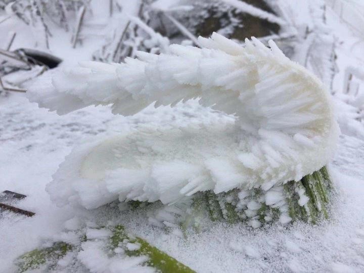 积雪不厚,不过作为“杭州的西伯利亚”,一夜“雪+北风”,雾凇又形成了,工作人员说现在山上“冻得鞋带都炸毛”。