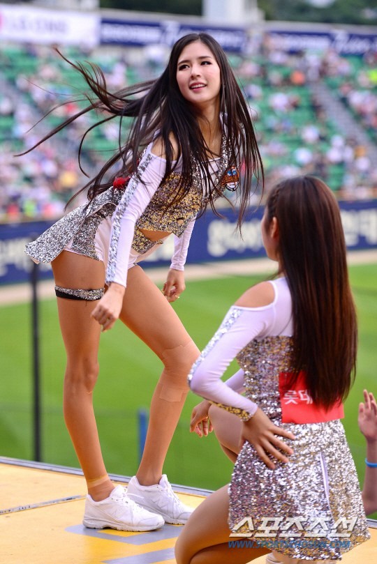 棒球在韩国是一项非常受欢迎的运动,而韩国的很多比赛中会邀请美女作为拉拉队队员助阵,以此来吸引人气,这也促成了一种容易出美女的职业:啦啦队。