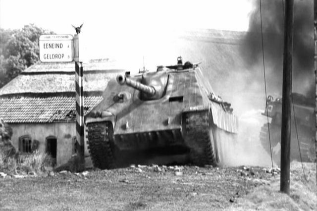 这时这名党卫军中尉的手下,已经在道路关键地点架起重机枪,而当时那名中尉也为了重新振作士气,准备拿这名蛊惑军心的装甲车司机开火,这是布尔少尉打断这名党卫军中尉冲动举动,这时无线电来传来战线指挥部的命令,我们向前线的支援任务取消,司令部命令我们就地组成防御延缓英军装甲旅的推进,没有限制时间,只提延缓二字,最终布尔上尉看了看,这那名党卫军士兵架起机枪的位置,发现是不错伏击的地点,于是三辆猎豹坦克歼击车,迅速开上高地,就地隐蔽,顺便带走名惊魂未定的装甲车司机。