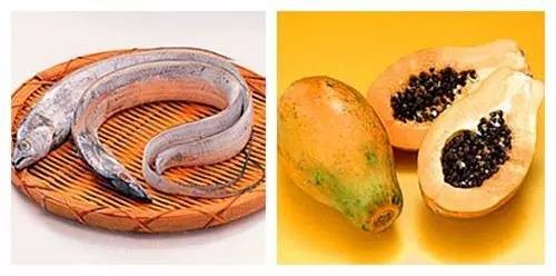 宜:带鱼 + 木瓜,对产后少乳、外伤出血等症具有一定疗效