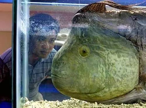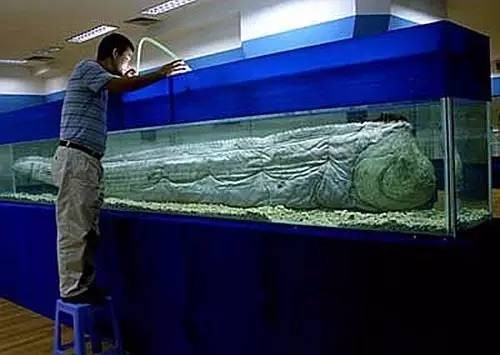 下图为福建自然博物馆的一条长达4.65米、宽0.5米、重88公斤的巨型带鱼标本。据介绍,该带鱼是两年前福建长乐梅花镇码头的渔民在深海捕鱼时意外捕获的,后将其献给福建省海洋局而制成标本科研并供人观赏。据鱼类专家按其骨龄分析,这条“带鱼王”年龄在百岁以上,如此巨大的带鱼目前在国内尚属首次发现。