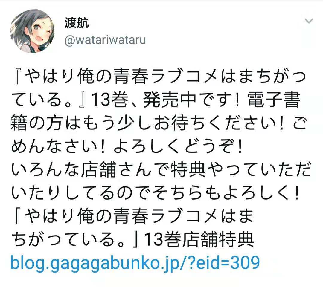 终于在11月20日,《我的青春恋爱物语果然有问题13》正式发售,离12卷发布过了整整一年。小编在看12卷时正是高考的时期,在12卷发布的时候,听说13,14卷同时发售,但现在的话14卷应该要等到明年了。
