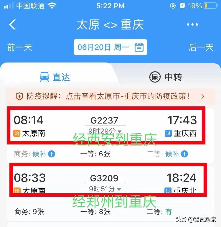 太原到重庆高铁2条线路:一条经大西线到,一条经太郑线到