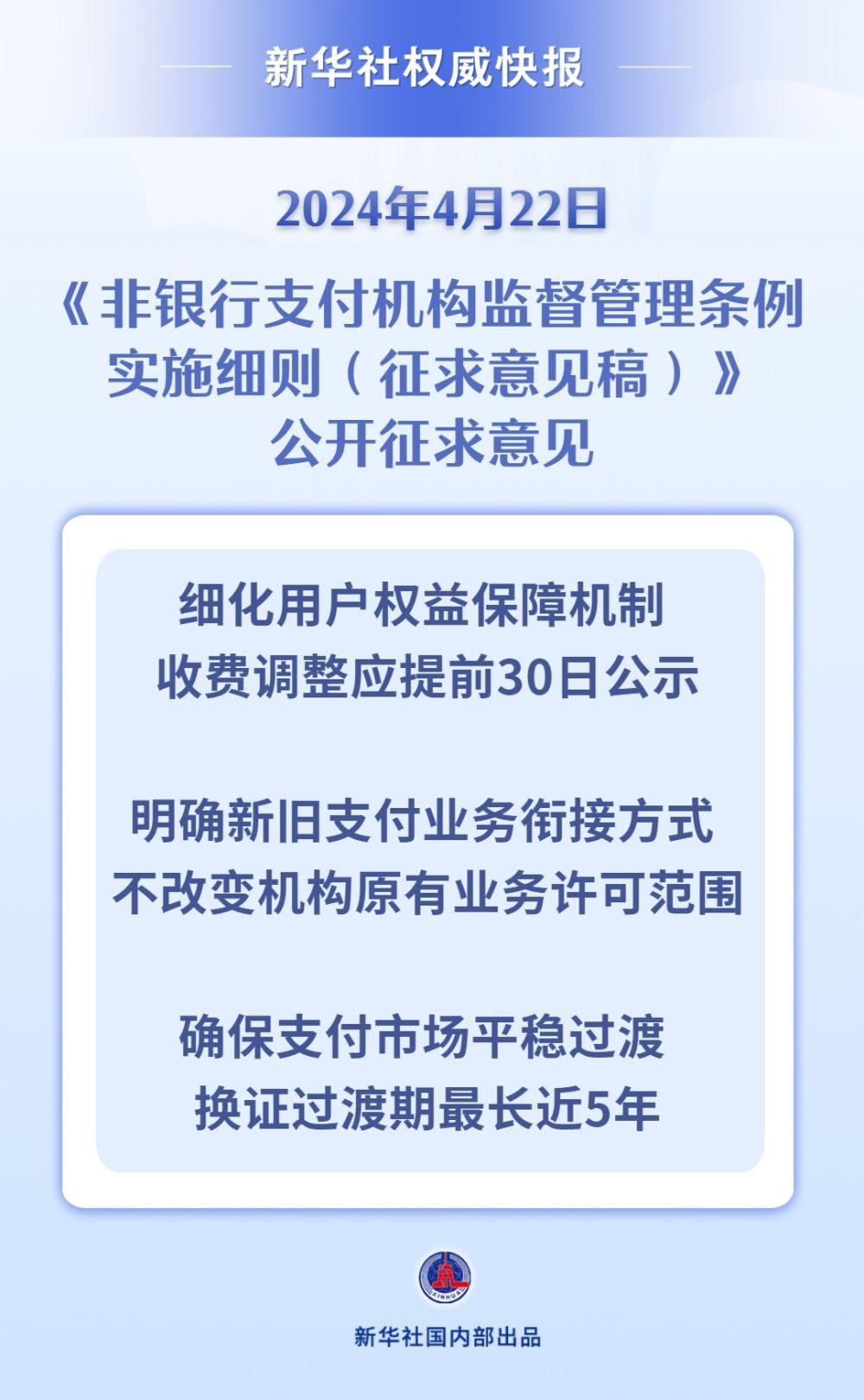 4 月 22 日,中国人民银行就《非银行支付机构监督管理条例实施细则(征求意见稿)》向社会公开征求意见。