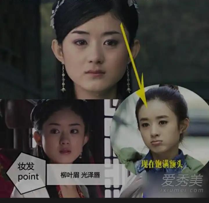 以前郭襄时期,她的眼距很宽,脸型也是方正一点的国字脸。