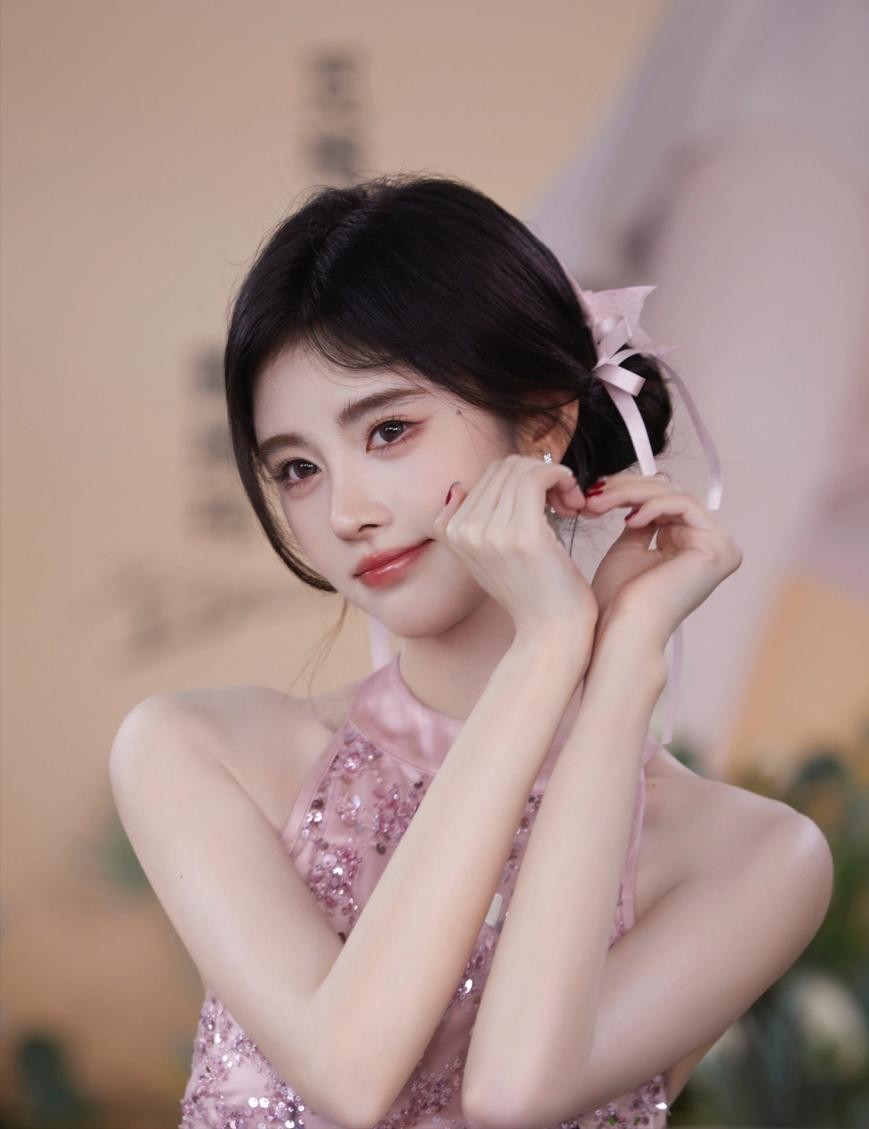 照片中的鞠婧祎眼睛不算很大,而且脸部也是偏向圆脸。