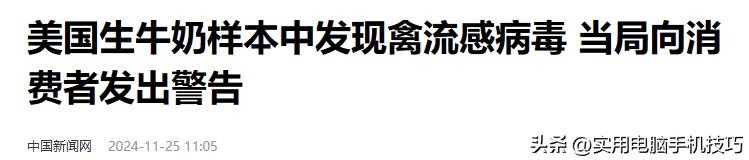 原文刊载于中国新闻网2024-11-25关于“美国生牛奶样本中发现禽流感病毒 当局向消费者发出警告”