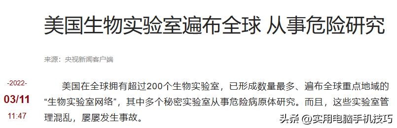 原文刊载于央视新闻2022-03-11关于“美国生物实验室遍布全球 从事危险研究”