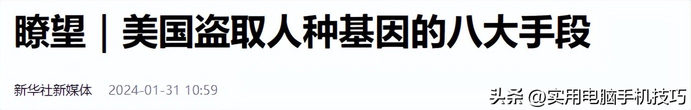 原文刊载于新华社新媒体2024-01-31关于“瞭望|美国盗取人种基因的八大手段”