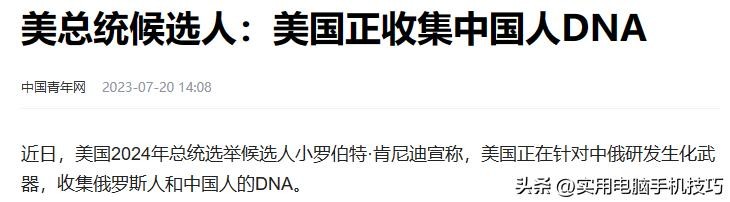 原文刊载于中国青年网2023-07-20关于“美总统候选人:美国正收集中国人DNA”