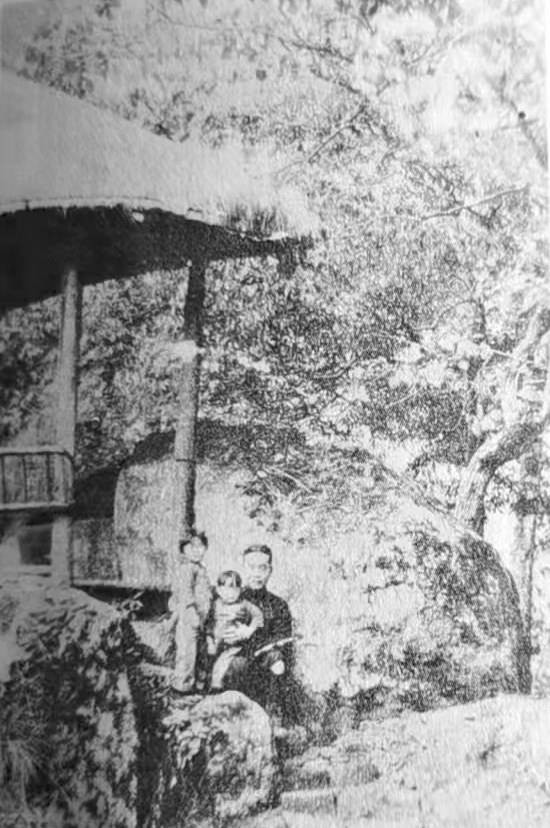 一九四三年于武义岭上草堂旁携大女孝仪,二女孝俦。