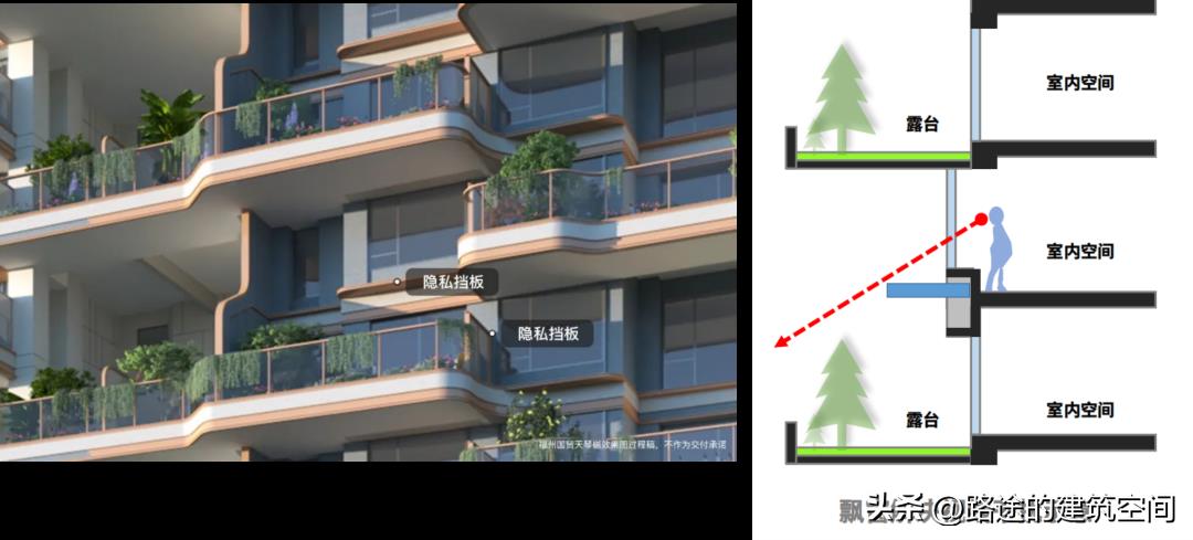 露台私密性上优化升级,在檐口和露台侧方设计隐私挡板,最大程度规避了奇偶户型之间的视线干扰,更好的保障隐私。南北向、奇偶错层挑高布局共享式超尺度露台,与户内空间分隔,对户内完全无遮挡,兼顾私密性与采光的同时令居住的功能和场景更为多元化,最大化实现生态住宅的花园生活。