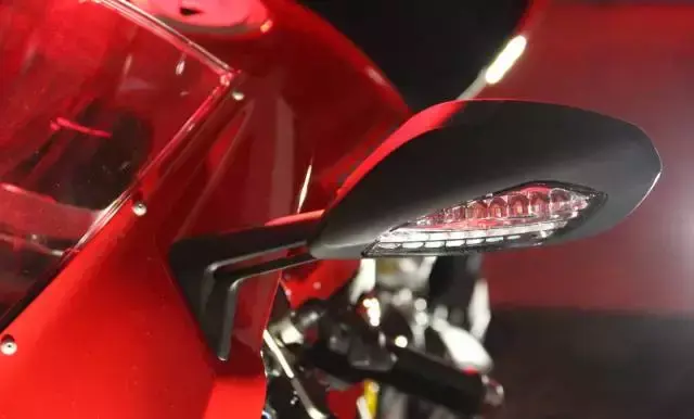 加宽车头整流罩和更宽的前进气口,让959 PANIGALE看上去更饱满更富有肌肉感,后视镜杆变短,并且增加倒风槽。