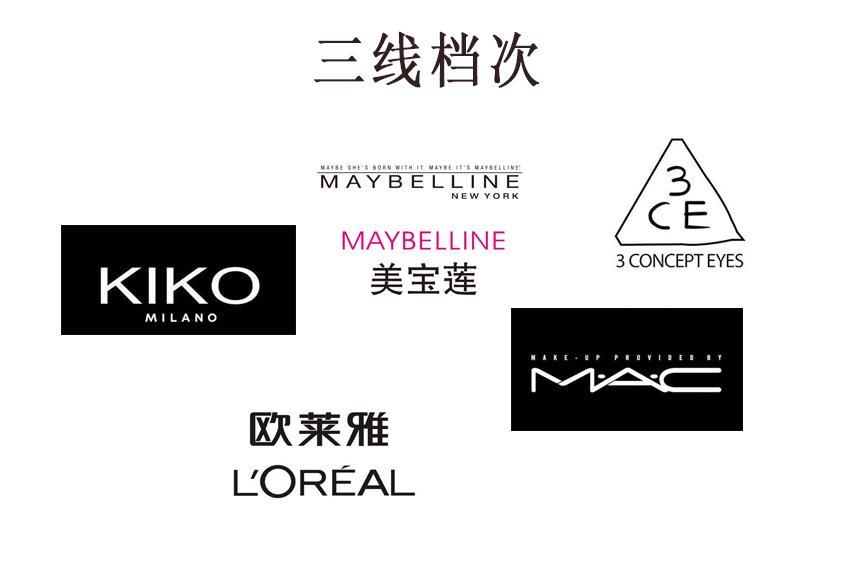 毕竟专业做彩妆的,MAC一种口红就除了8个质地,也是够够的了, MAC的彩妆还是挺不错的,欧莱雅的话是双线运作,美宝莲老品牌了,3CE则是韩国知名品牌,也是能够算得上这个档次的,KIKO相对弱一些,但是知名度高。