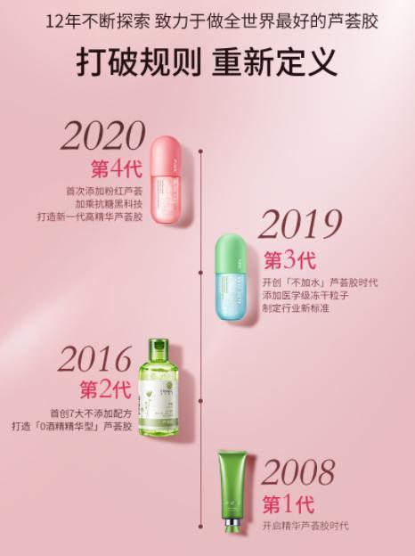 无论是颜值、原料成分还是功效,“粉红芦荟胶”都重新定义了芦荟胶并形成独特的反转记忆点。