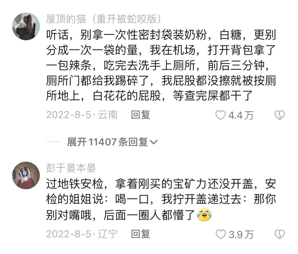 安检时遇到的那些尴尬瞬间!屁股都没擦被摁在蹲坑检查白色粉末!