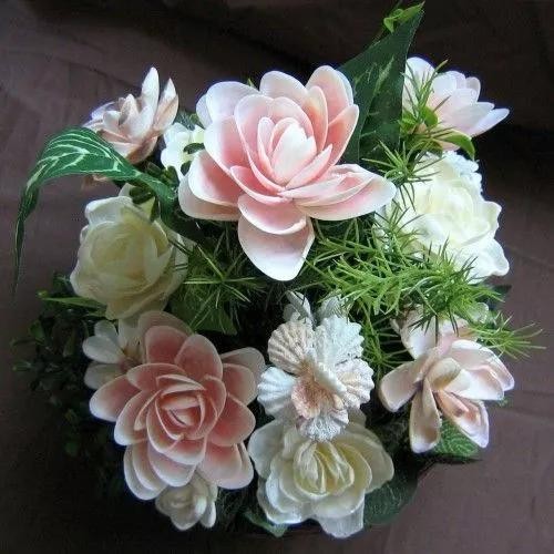 海边捡回家的贝壳,她在家粘贴起来,做出的手工花非常好看!学习