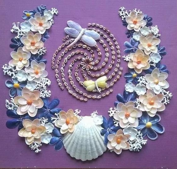 而且还是非常简单的,将这些贝壳用胶粘贴在固定的框上,改造成了各种花样。我们今天就来学习这款用贝壳改造手工教程。