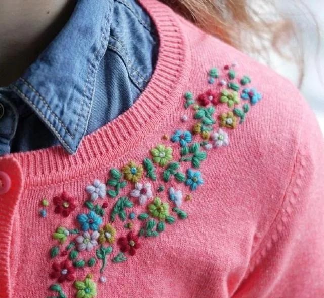 不知你是否尝试过在织好的毛衣上绣花呢?再说穿了好几年的毛衣,或已经感觉过了时又有点显旧的款式,拿出来绣上自己喜欢的图案,时尚又美丽的美衣全都属于你。而且不仅仅限于毛衣上的刺绣,比如一些大衣或休闲的衣服,在胸前,领子或袖口处可以绣上几朵小花,以后想换新衣时就不用每次都要买买买。