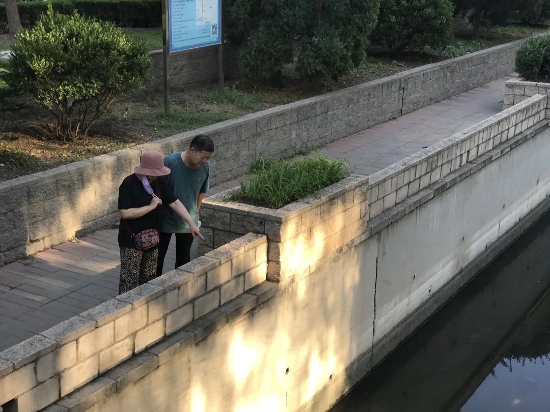 沿河散步居民在讨论水质情况/记者拍摄
