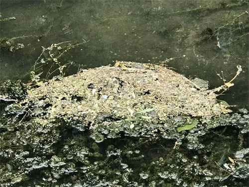 河道内水草和垃圾纠结成团/记者拍摄