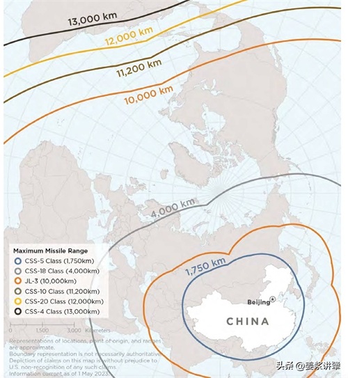 《2023年中国军力报告》,美军正式承认解放军的洲际弹道导弹发射装置(包括导弹发射井和发射车)比俄罗斯还多。美国卫星调查显示,中国在西方新建的洲际导弹发射井数量超过了美国空军的发射井数量。美军现役有 450 个民兵-3 洲际弹道导弹发射井。不过美国认为,中国的洲际弹道导弹还有大量没有使用,而且未来数量还会增加。
