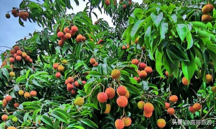 双肩玉荷苞荔枝台山市具地方特色的荔枝主栽品种,北陡镇北陡沙堤村母树种植距今有270多年历史。北陡靠近沿海,常年有海雾滋润,阳光充沛,气候温暖湿润,无污染的良好生态环境。果品品味独特,色泽鲜艳,果大核小,肉厚爽脆不流汁。那琴半岛度假村内有上百亩的老树荔枝林大多属于双肩玉荷苞荔枝,景区还有龙眼、大树菠萝、黄皮、杨梅等等天然果树,每逢果实成熟季节,让你一享摘果的乐趣。