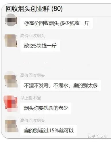 偶然进入一个回收烟头的群,原以为是扯淡的,没想到群里真的还有人做回收烟头这个生意。