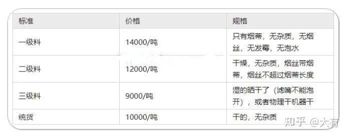 根据该回收公司的工作人员介绍,在烟头回收行业,按照品质好坏可依次分为A货、B货、c货、通货4大类,不同品质的烟头有不同的回收价格。