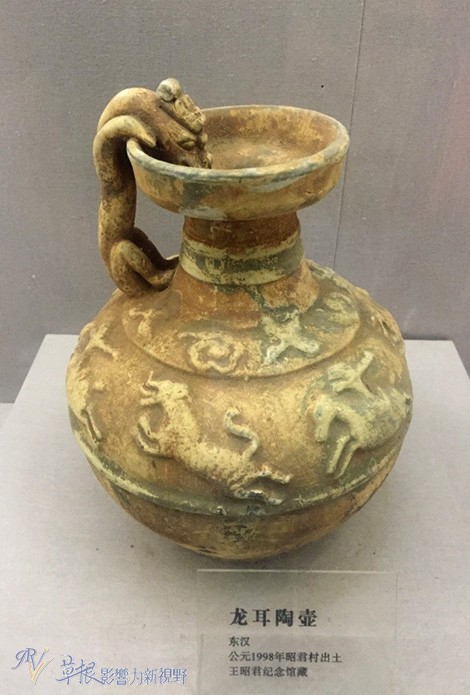 昭君村出土的东汉“龙耳陶壶”,相当精美