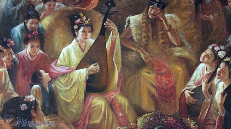 另一幅单于及众人围绕昭君,陶醉于昭君的琵琶声