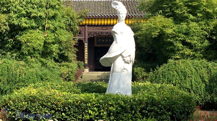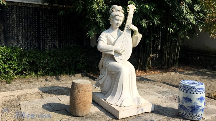 庭院间竖立一座王昭君白色雕塑,不愧是温柔婉约的古代四大美人