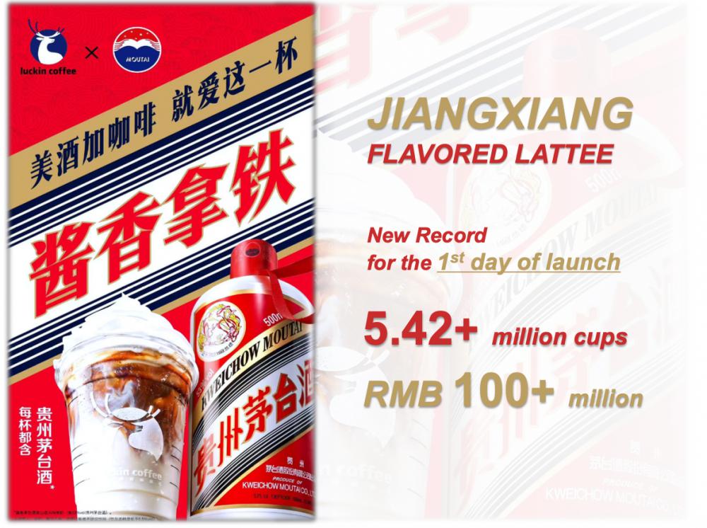 " 酱香拿铁 " 上市首日销量突破 542 万杯。图片来源:瑞幸