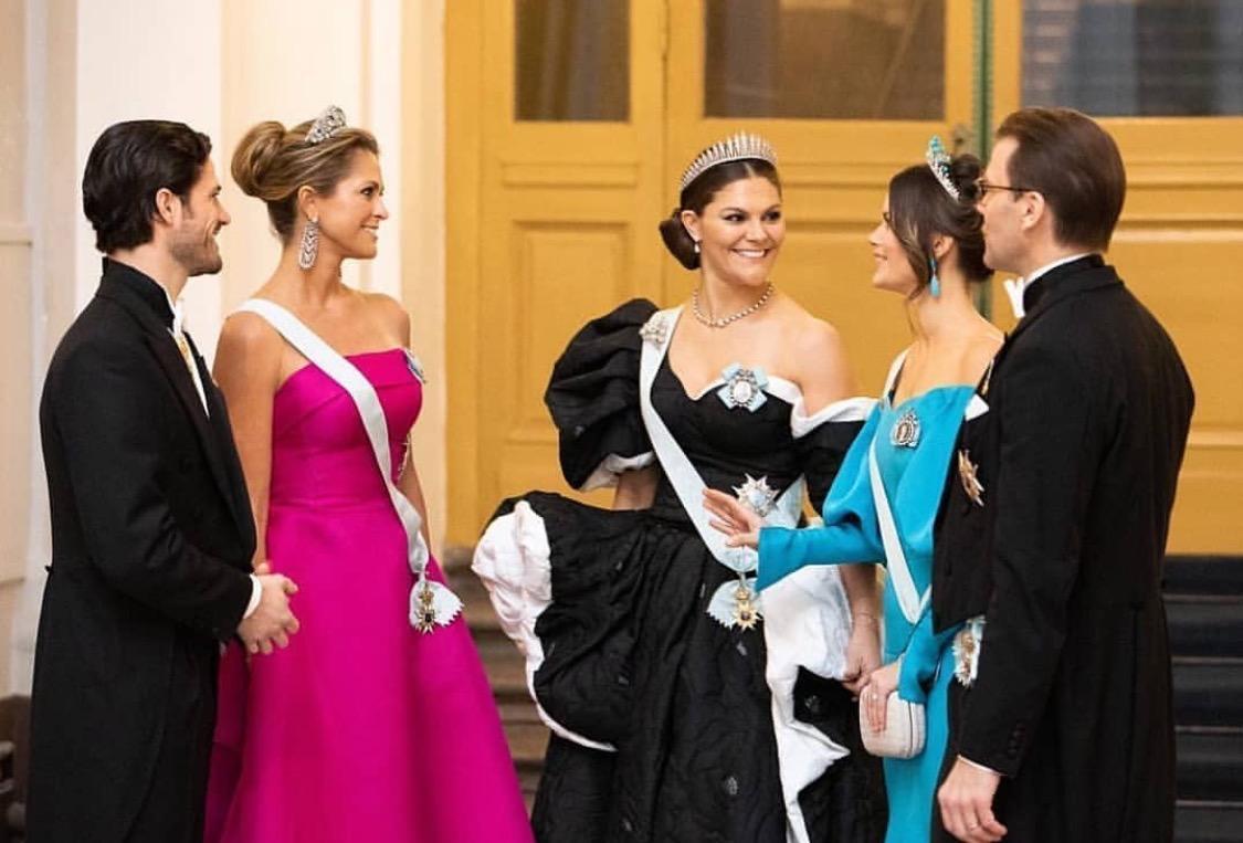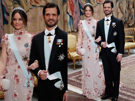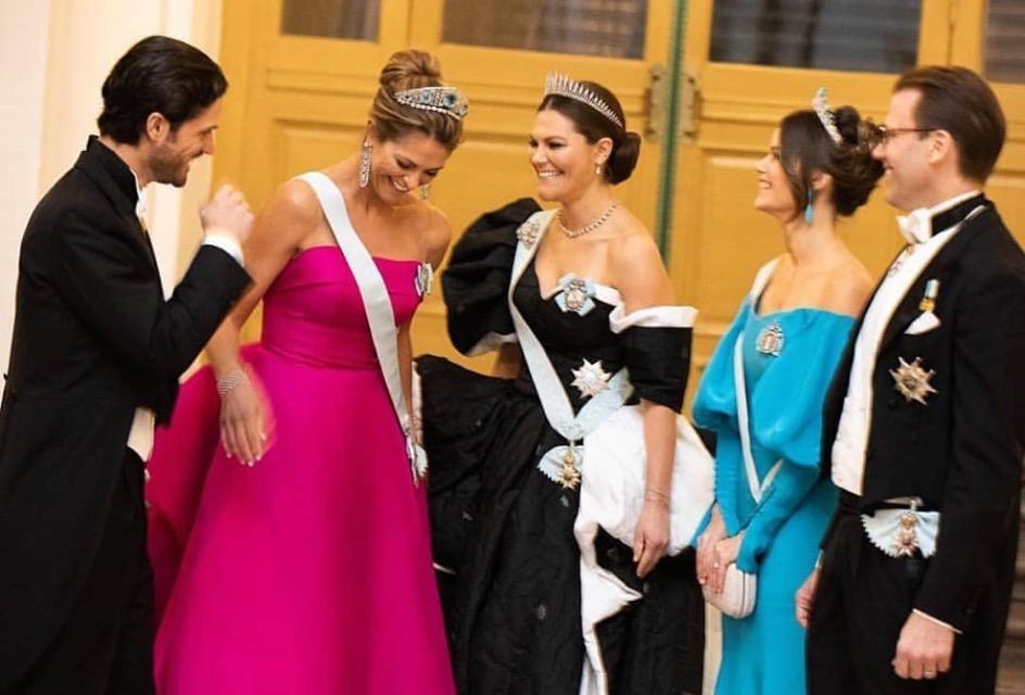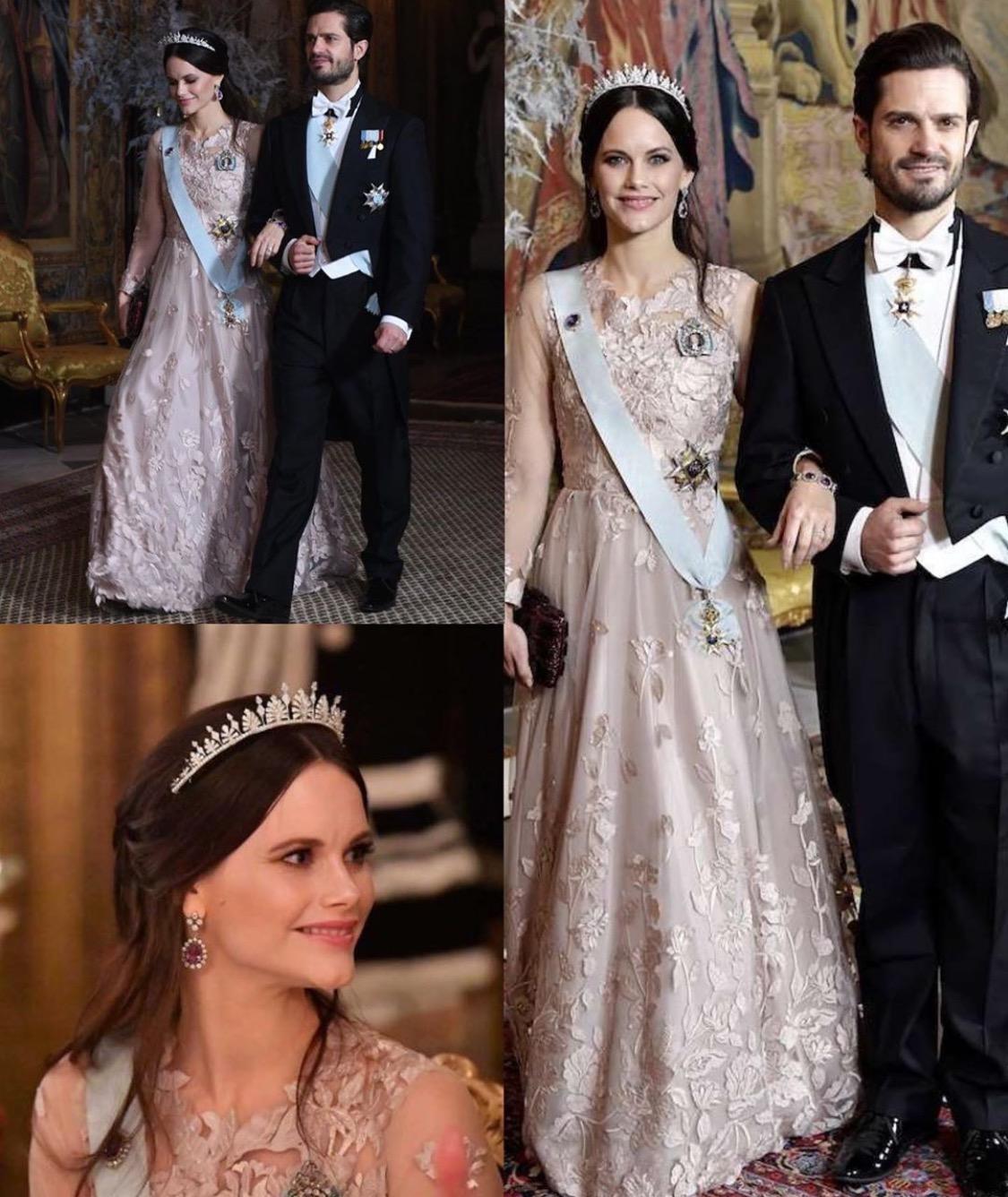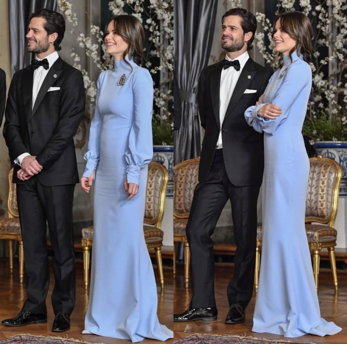 瑞典王室晚宴时刻:索菲亚王妃蓝色礼服惊艳!比王储和公主更美?大家觉得谁的造型最好看呢?