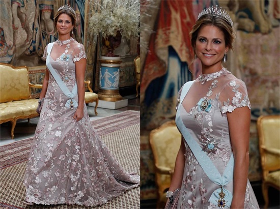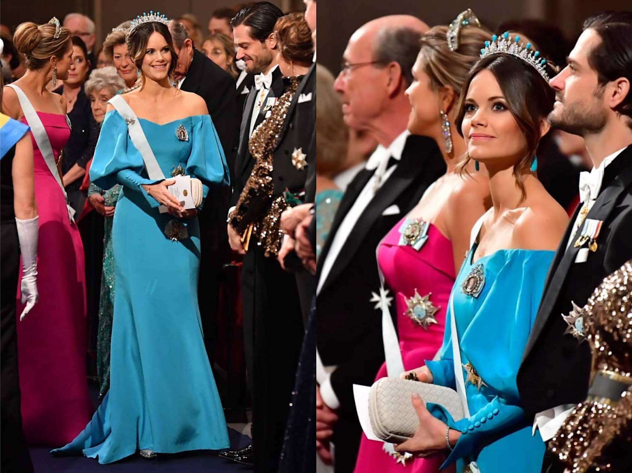瑞典王室晚宴时刻:索菲亚王妃蓝色礼服惊艳!比王储和公主更美?