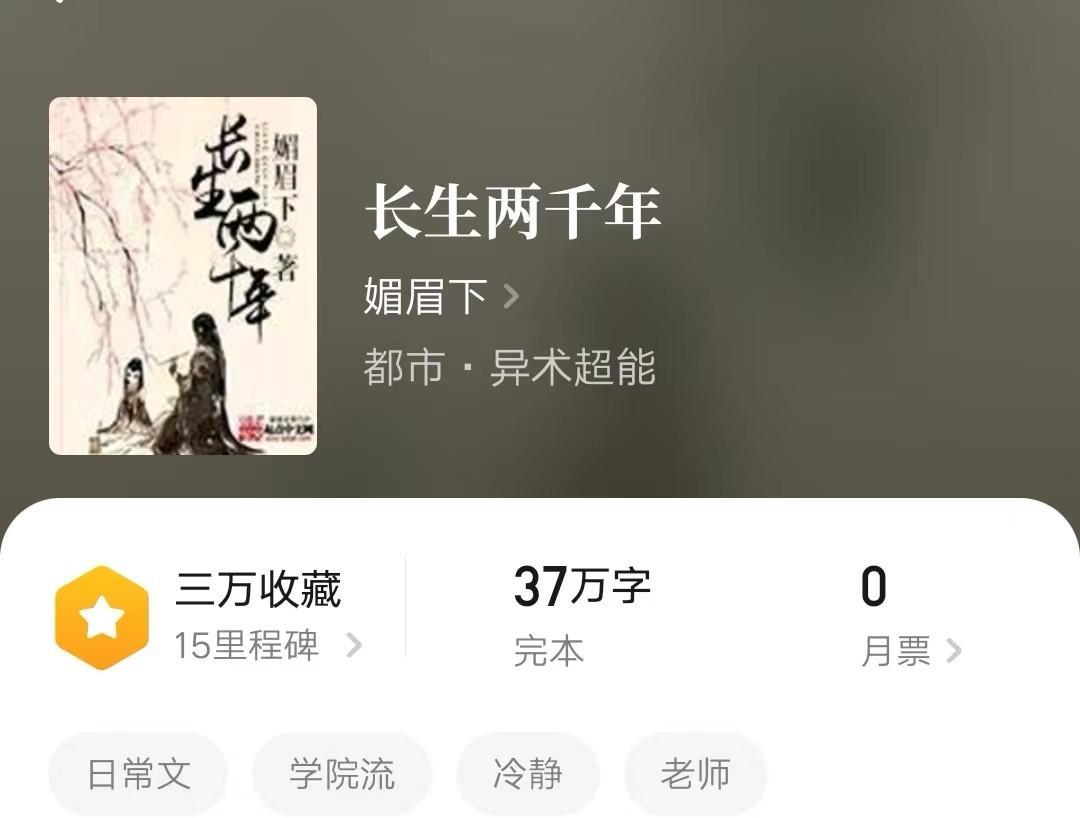 其实还有一本小说,也是促使我写这篇小说推荐的原因,叫做《长生两千年》,我个人认为是蛮不错的一本,可惜作者君没有坚持的写下去,一百多章就太监完结了。现在想起仍感可惜。