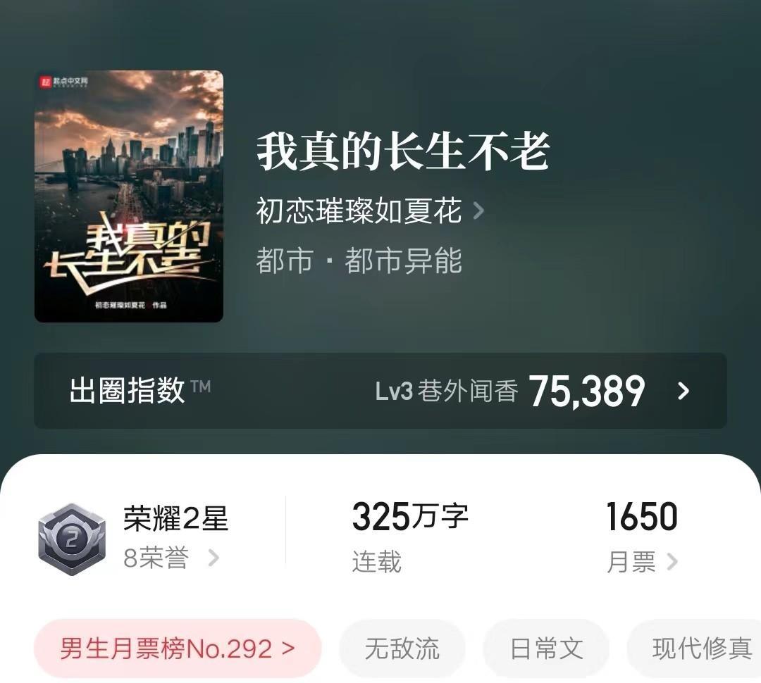 第三本《我真的长生不老》 作者 初恋璀璨如夏花 字数324万字 目前连载中。
