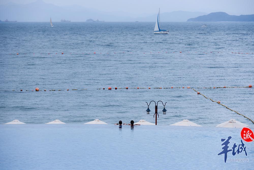大鹏湾杨梅坑一家酒店内从泳池看大鹏湾大海 羊城晚报记者王磊摄