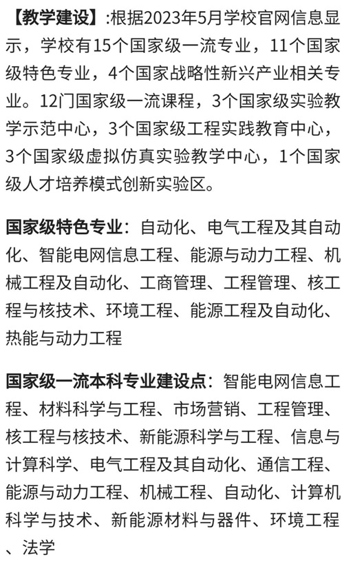 【属性】:教育部直属、由国家电网有限公司等12家特大型电力集团和中国电力企业联合会组成的理事会与教育部共建的全国重点大学,是国家“双一流”“211工程”“985工程”重点建设高校