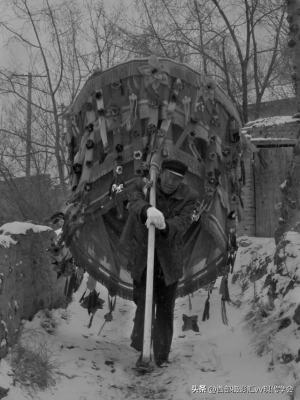 84、雪中在庙会上扛什么地方万民伞的老汉·2009年2月25日·甘肃永靖县吹王台乡永乐村周家湾社