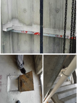 严禁野蛮施工,强拉、强打等方式调整铝模;严禁随意切割已排版的模板(维修除外);外墙K板螺丝预埋,方向要正确(螺帽在梁内,套管保护,利于拆除,节约成本);飘窗两侧是否有K板保留定位(工人经常拆除),保障不错台;楼梯间两侧及电梯井四周楼层错台一直是管控重点,K板加固时应有独立的加固方式,保障模板拆除过程中不会被挠动,可采用预埋螺丝或预埋螺杆等方式,与背楞加固体系分离;