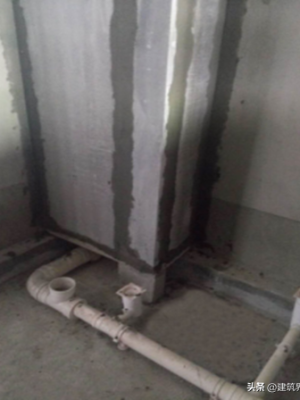始终两层水槽,周围用玻璃胶,用胶带、螺丝固定好。将水有意识的引导到某个地方。其中一层在N-1层顶部,浇筑前安装,另一层在下面一层影响涂料及管道施工时拆掉。