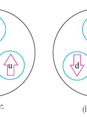 一个质子里包含有两个上夸克和一个下夸克(见图17-3(a)),而一个中子里则是包含着两个下夸克和一个上夸克(见图17-3(b))。所以质子的电荷为+1,而中子的电荷为0。