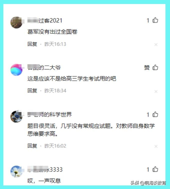 这份测试卷是不是葛军出的呢?我说应该与葛军无关,可能葛军老师都不知道有这份测试卷。话说回来,这份试卷如果是葛军出的,侧面证明葛军不会参加今年高考出卷工作;只要与高考出题有关的人,是不会在网上发这样的测试卷的,肯定是违规的。