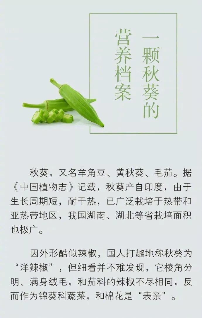 秋葵作为近几年爆红的蔬菜,它的蹿红史,可以说是蔬菜界“造星”的经典案例。虽然不少人对其黏糊糊的口感表示拒绝,但它还是成功在国人餐桌上占据了一席之地。秋葵是如何抓住国人的胃的呢?本期,《生命时报》也给你一个爱上秋葵的理由。